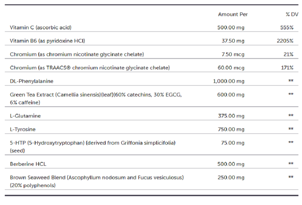 | Chromium (as TRAACS® chromium nicotinate glycinate chelate) | 60 mcg | 171% |