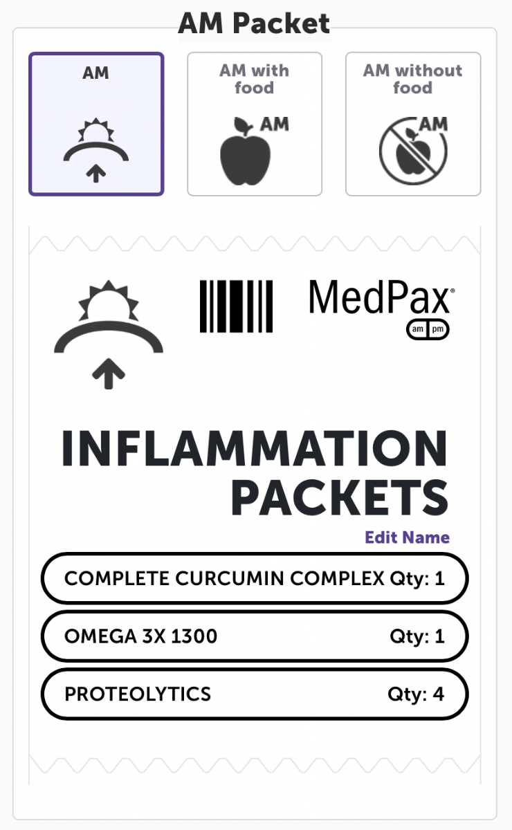 You just grab your 2 packs, and you are set. All of the needed nutrients for the day are in these one-day, easy-to-use, individualized tear-off packets with Protocols For Health Inflammation Pax.