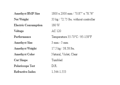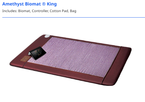 Nobel Prize-winning research discovered the effect of negative ions on biological cells describing their detoxing effect. Biomats with Jade have been in production in the Orient since the 80's. Amethyst replaced Jade because of its filtering and natural healing properties and was introduced to the United States in the early 90's. FDA approval was listed on 5/24/99. Tens of thousands of Biomat Users extol upon its healing properties.